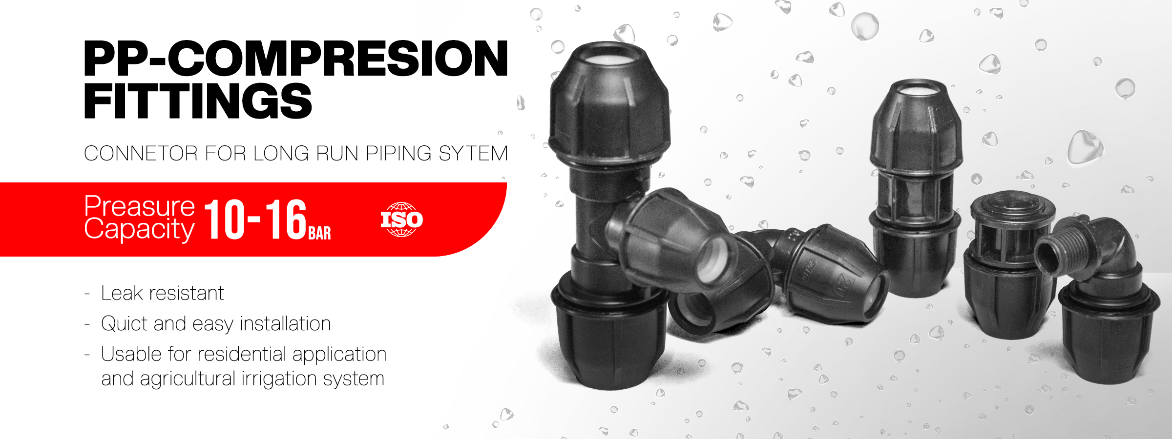 Terbuat dari bahan Plastik Polypropylene (PP), digunakan untuk menyambung Pipa ke fitting HDPE, PPR, PVC. dengan cara mekanikal compression (diputar dan dikencangkan) dari ukuran diameter 20mm s/d 110mm, kelebihan dari fitting jenis ini adalah lebih cepat dan mudah dalam pemasangan, bisa dibuka kembali, tidak perlu menggunakan mesin atau lem, sehingga cocok diapplikasikan untuk sistem perpipaan seperti, perkebunan, pertanian, taman, sambungan rumah PDAM, perikanan, tambak, perumahan dll.